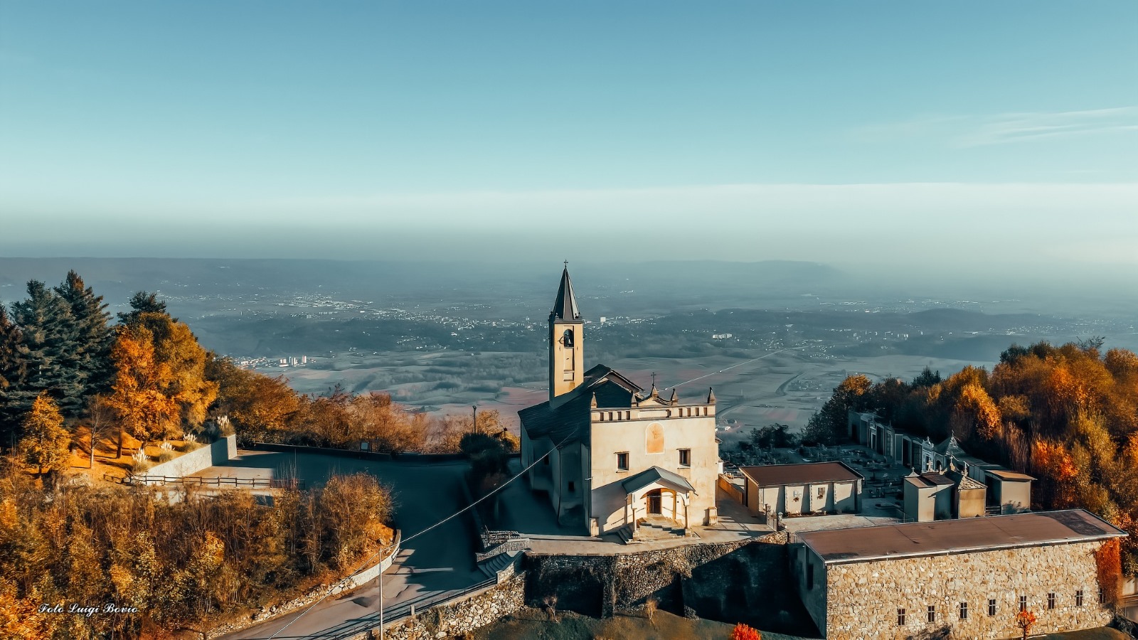 Nei giorni limpidi si possono scorgere sul fondo la Basilica di Superga, le ex centrali nucleari di Trino Vercellese.