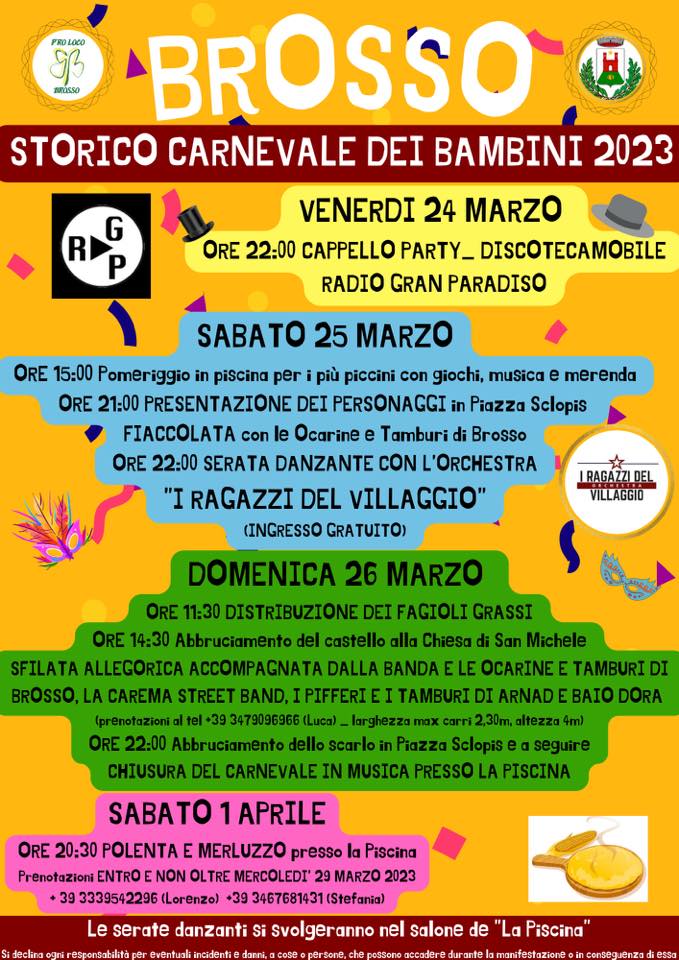 Si svolge la domenica precedente la solennità delle Palme ed ha i bambini nel ruolo dei personaggi principali. La definizione di “storico”non è fuori luogo, poichè, sebbene ammantata di un alone leggendario, la rievocazione si allaccia ai tragici eventi di cui il paese e l’intera vallata furono teatro sul finire del 1300. Infatti nel 1386, qui, ebbe inizio il “Tuchinaggio”, quel movimento di rivolta popolare contro le vessazioni dei signorotti locali, che dilagò rapidamente in tutto il Canavese. Alla testa dei popolani in armi si pose Antonio Capra -secondo alcuni un nobile di Mazzè caduto in disgrazia – che si era rifugiato sul monte Cavallaria dove viveva allevando capre (da cui il soprannome Capra). La scintilla che diede l’avvio alla sommossa fu l’atteggiamento sprezzante del signorotto, deciso, com’era consuetudine a quel tempo, a far valere per sè lo “ius primae noctis” con una novella sposa (non si sa se fosse quella di Antonio Capra o di un abitante del villaggio.) Brandendo gli attrezzi del lavoro quotidiano, la folla assalì il castello, posto sull’altura alle spalle dell’attuale cimitero, lo incendiò e catturò il tiranno che venne chiuso in una botte fatta poi rotolare lungo il ripido pendio che scende verso l’abitato di Lessolo. La leggenda vuole che il popolo abbia festeggiato con canti e balli la conquista della libertà. Tornando al carnevale, il sabato sera, dopo la presentazione dei personaggi dal balcone del Municipio, si svolge una sfilata per le vie del paese: Le fiaccole accese e la musica del locale gruppo “Ocarine e Tamburi” ricreano la suggestione dell’assalto notturno e della successiva baldoria. Ogni anno, inoltre, viene costruito un castello in legno e cartone che viene dato alle fiamme prima che inizi la sfilata dei personaggi con il loro seguito di gruppi mascherati e di carri allegorici. In passato, come elemento importante della sfilata immediatamente dopo il carro della castellana, c’era una grossa botte, in parte tagliata, da cui sbucava un giovanotto nelle vesti del tiranno, incatenato e ben sorvegliato da robusti popolani; purtroppo non essendoci più nessuno disposto a rivestire questo ruolo la botte è ridotta a semplice ornamento della parte posteriore del succitato carro.